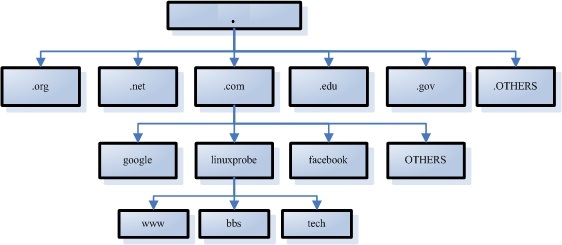 Figure 13-1 Hierarchical tree structure used by the DNS name service