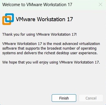When the Welcome to VMware Workstation 17 screen appears, simply click Finish (Figure 1‑11).