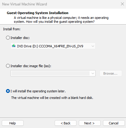 Select I will install the operating system later and click Next (Figure 1‑15).