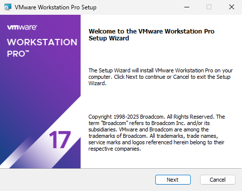 Download the VMware Workstation 17 installer and double‑click it. After one to three seconds, you should see the initial wizard (Figure 1‑1).