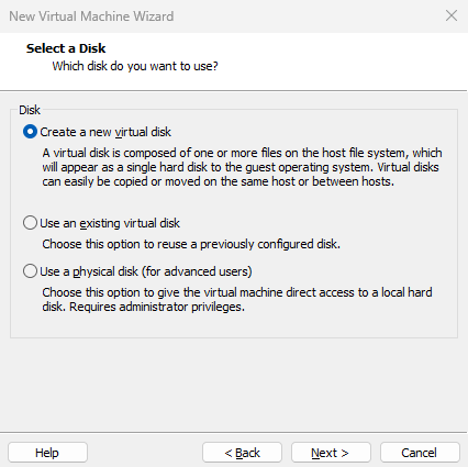 Because this is a new system, select Create a new virtual disk and click Next (Figure 1‑23).