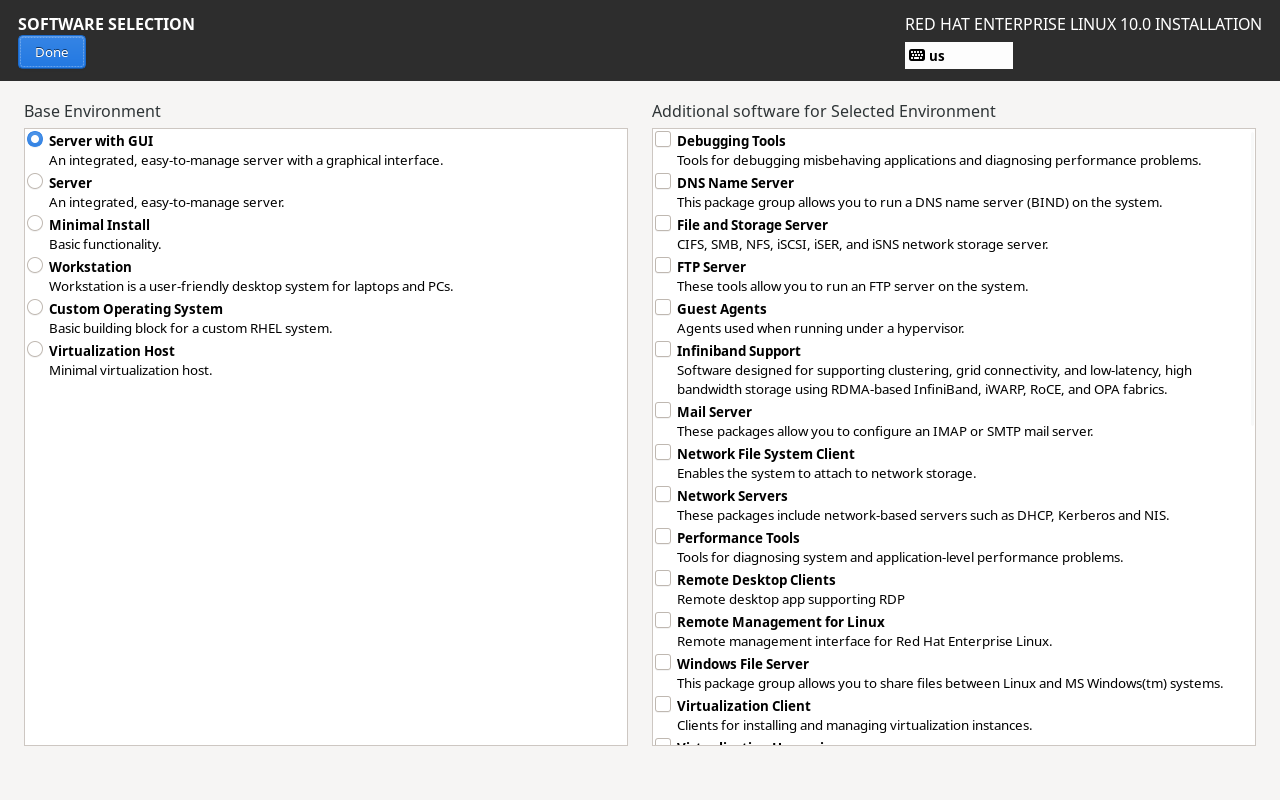 Red Hat Enterprise Linux (RHEL) 10 — required: a stable, enterprise‑grade Linux distribution by Red Hat.