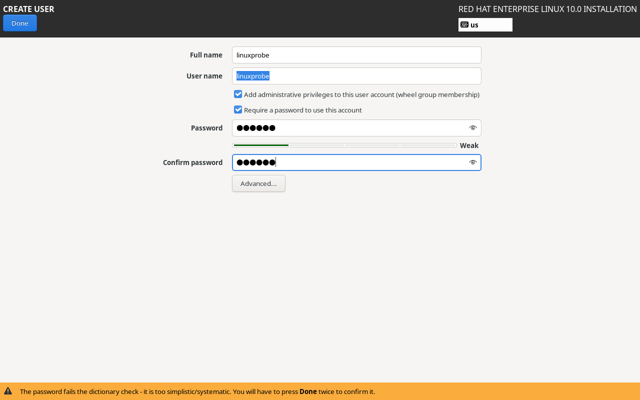 Do not worry about English. Linux commands have specific technical meanings, not just the everyday meaning of the word. For example, the word free means “freedom” or “at no cost,” but the free command shows memory usage. Even if your English is strong, you still have to learn Linux concepts. Keeping the system in English also builds your reading skills. If you strongly prefer Chinese, you can select it here.