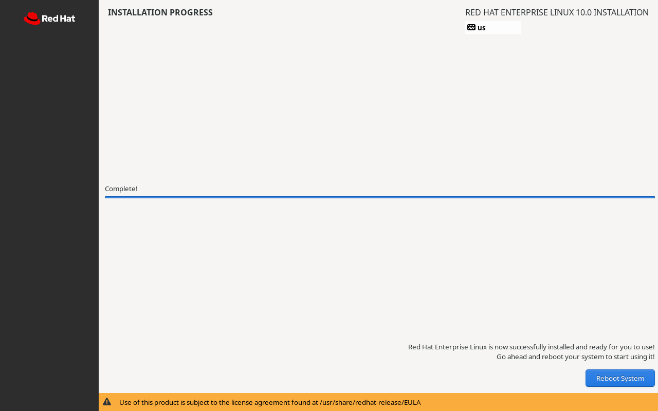 Press Enter and the desktop appears (Figure 1‑47). Your RHEL 10 installation and deployment are complete.