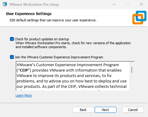 Choose whether to check for updates on startup and whether to join the Customer Experience Improvement Program, then click Next (Figure 1‑5).