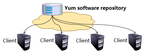 Yum analyzes package dependencies based on your request and interacts with repositories to install, update, and remove software—very much like Apple’s App Store. Provide the name of the package and the repository will find it, resolve and fetch its dependencies, and complete the installation. Figure 1‑49 shows the concept, and Figure 1‑50 shows a typical topology.