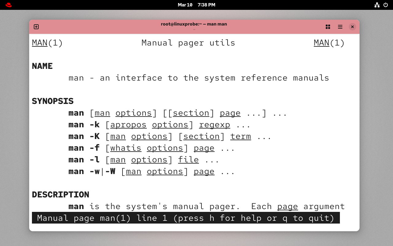 root@linuxprobe:~# MAN