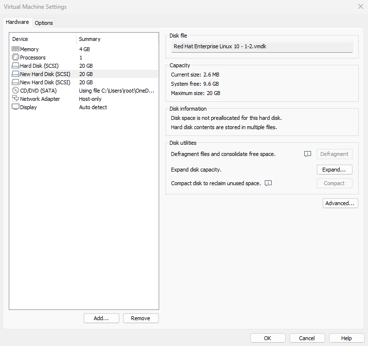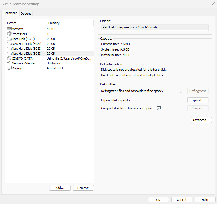 With the diskâmanagement basics from Chapter 6, deploying RAID and LVM becomes much easier. Start by adding four disks in your VM to build a RAID 10 array, as shown in Figure 7â5. We wonât repeat the VM steps here. Use SCSI or SATA virtual disks; 20âŻGB each is fine.