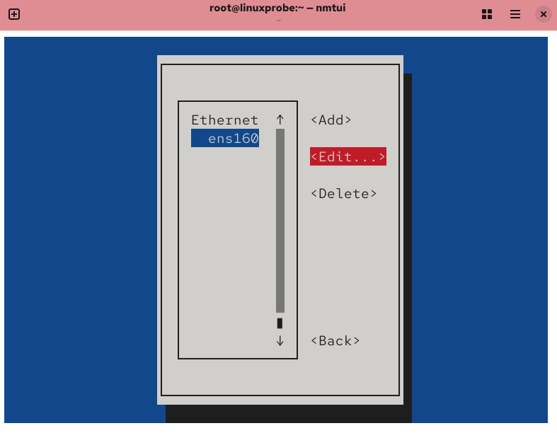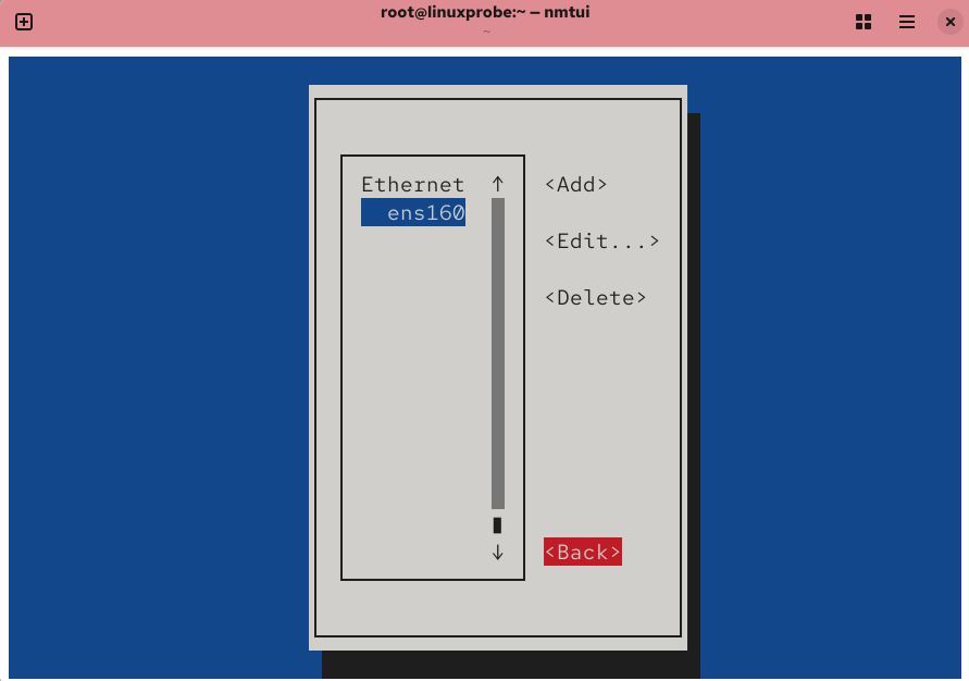root@linuxprobe:~# nmcli connection add con-name house type ethernet ifname ens160